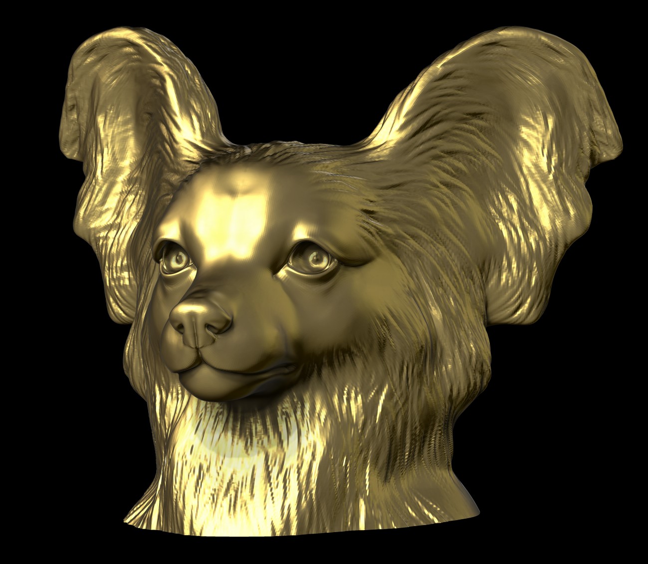 Papillon, Épagneul Nain Continental, petit chien, figurine chien 3D, buste chien.